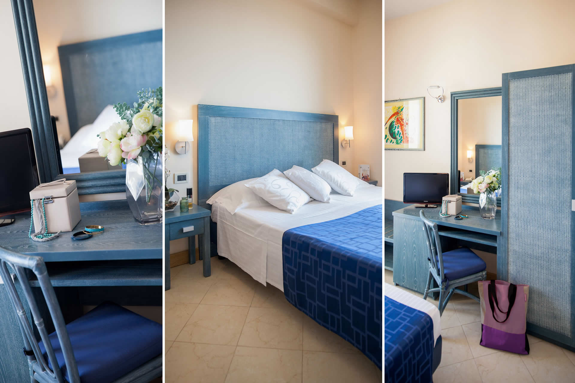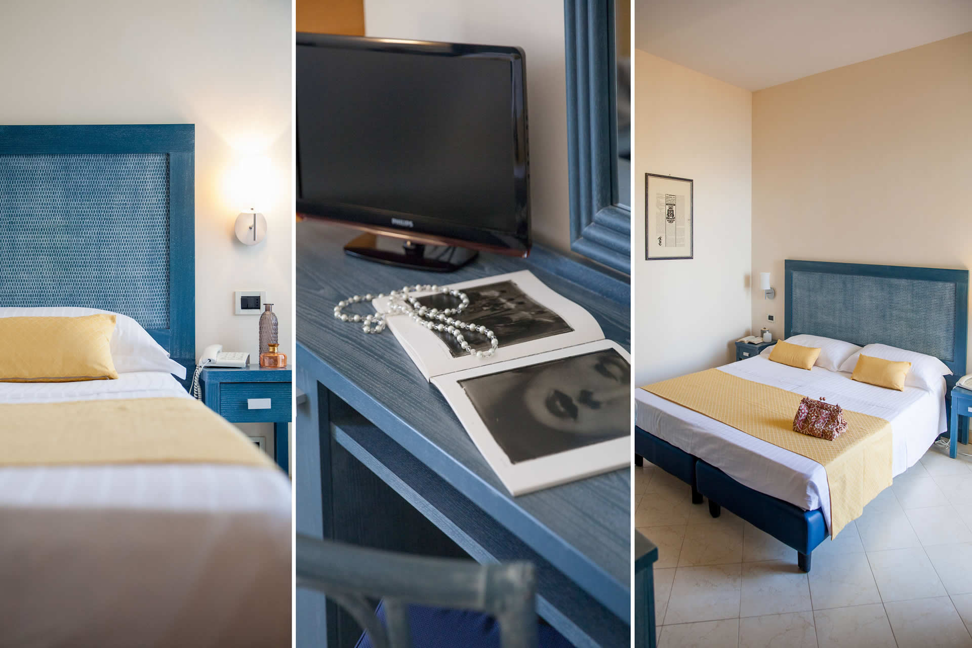 Les Chambres Triples avec Balcon et Vue Latérale sur la Mer offrent espace, confort et une vue agréable sur le Golfe de Diano Marina. Parfaits pour ceux qui voyagent en famille ou entre amis, ils allient fonctionnalité et détente dans un environnement accueillant.